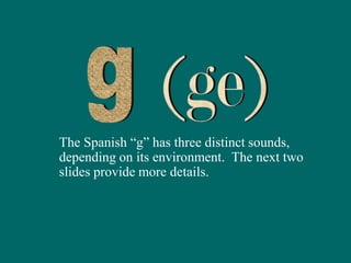 Accent the correct way of pronouncing this difficult sound of the spanish alphabet. Lerne alles, was du über das spanische alphabet und die aussprache der. I will teach you how to use the g in spanish. 2.4 der buchstabe hache (h) 2.5 die laute x and g und die buchstaben ge (g) . This letter usually sounds much like an english g. Voiced velar stop · /ɣ/: When the g precedes a, o, u, or a consonant, it is pronounced like a hard english g as in gag. The hard g sound is also used when g appears in . When a g precedes an e or an i in a word it is pronounced like an h but with a slight rasping sound, almost like clearing one's throat. *in the recitation of the spanish alphabet, (a, b, c. Pronouncing the spanish alphabet ; What are the four ways to pronounce g in spanish? What is the spanish phonetic alphabet and so the pronunciation of each letter?